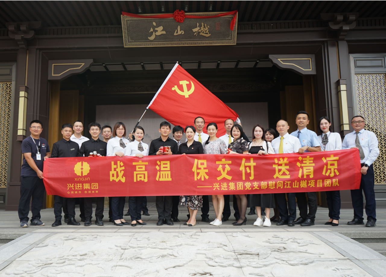 興進(jìn)集團(tuán)黨支部書記羅捷、集團(tuán)副總裁王敏、興進(jìn)物業(yè)服務(wù)集團(tuán)總經(jīng)理王永忠、集團(tuán)黨支部宣傳委員陳健帶領(lǐng)黨員代表一行,為奮戰(zhàn)在交付一線的項(xiàng)目、物業(yè)、營銷員工以及集團(tuán)交房支援人員送去解暑清涼慰問品,讓堅(jiān)守在崗位的一線員工們感受到絲絲清涼和濃濃關(guān)懷。